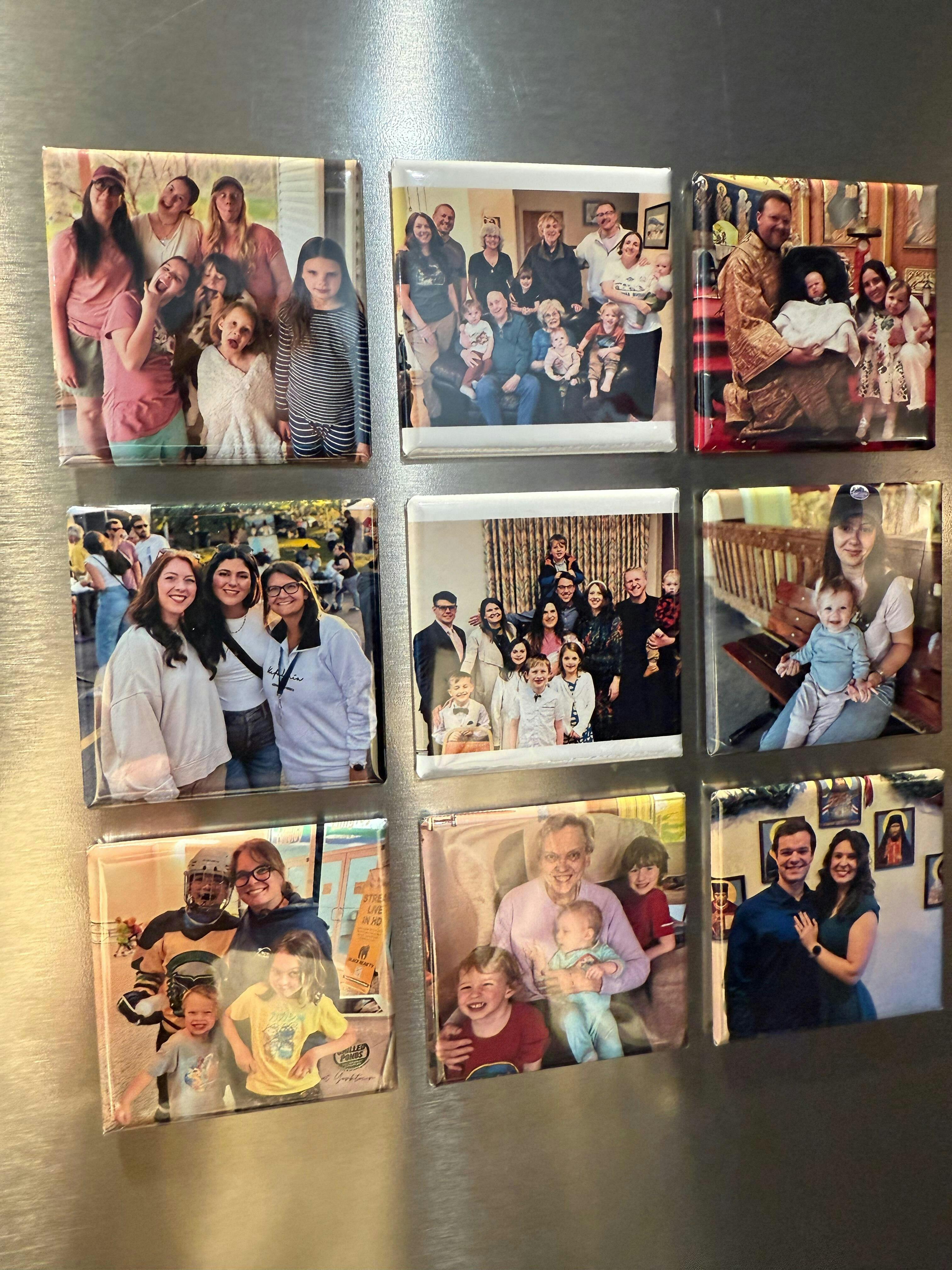 Select 9 photos from your camera roll and upload them to be made into 2”x2” square magnets that you can put on your fridge, your desk at work, or gift to your friend, mom, dad, grandma, grandpa, or anyone else that might enjoy a custom gift!
